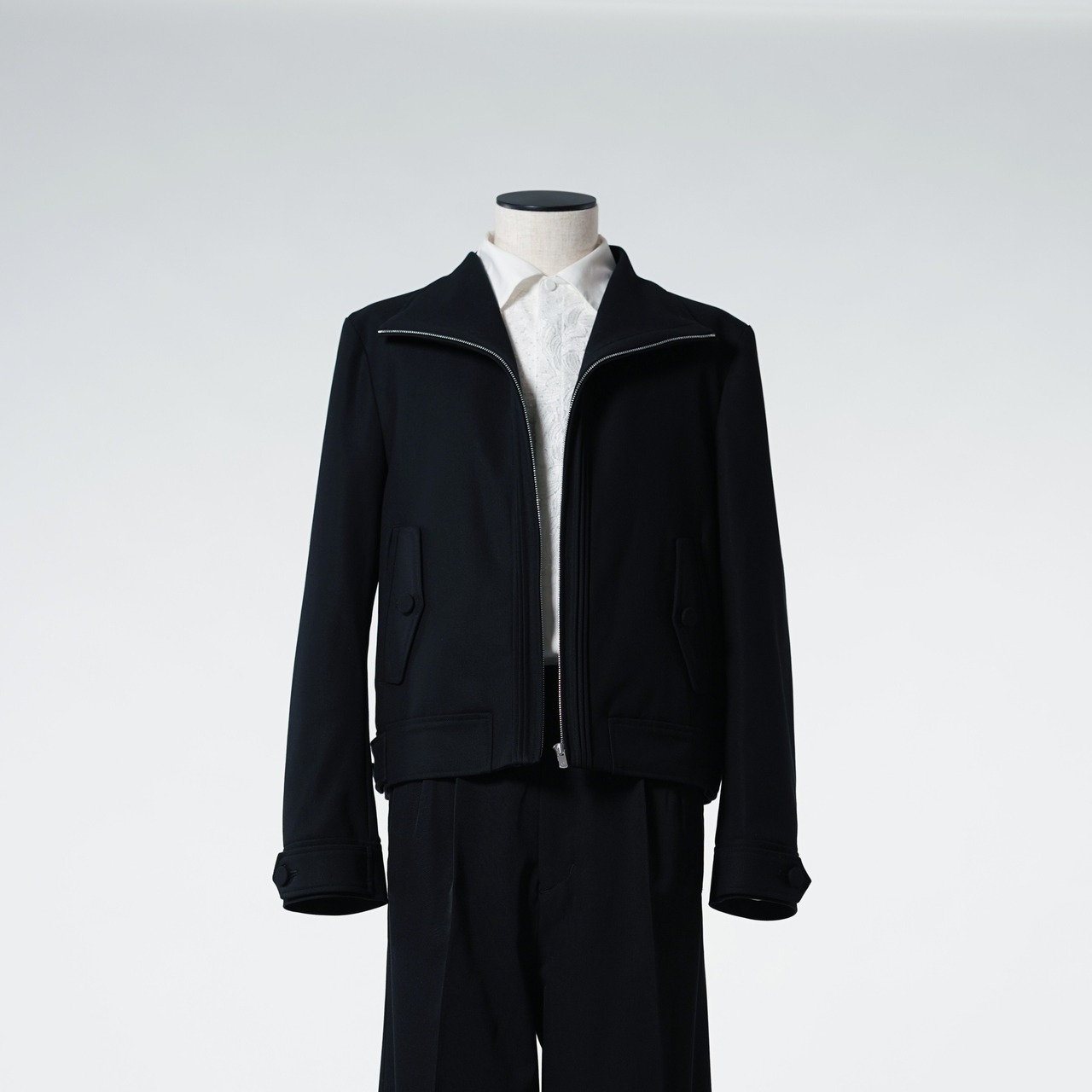 HIGH NECK PINTUCK JACKET BLACK